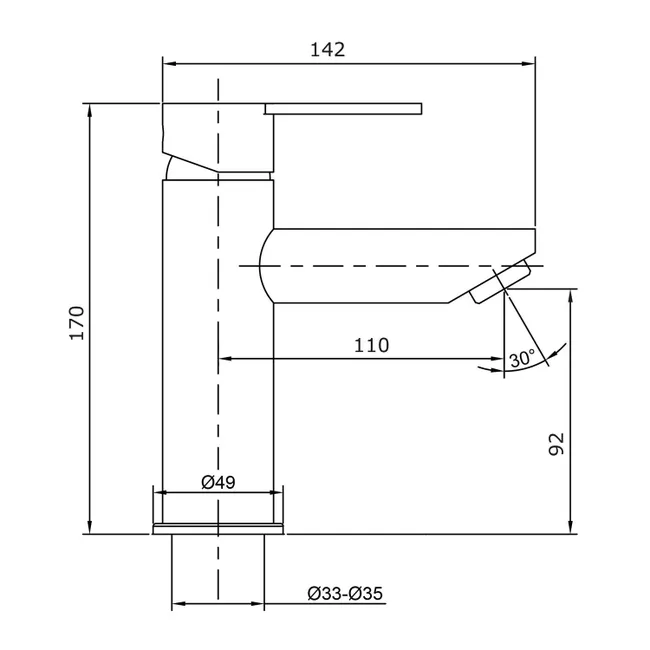 – Grifería lavabo monomando latón cromado.